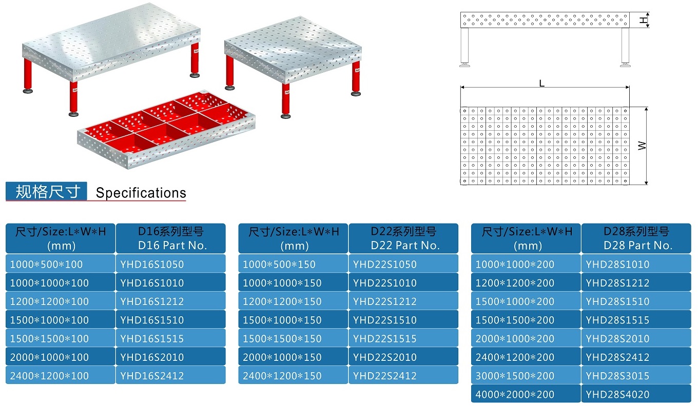 ?三維柔性焊jie工裝平臺據產品的大小,形狀而定,鈑金類及小型鋼結構件多采用D16系列的平臺;