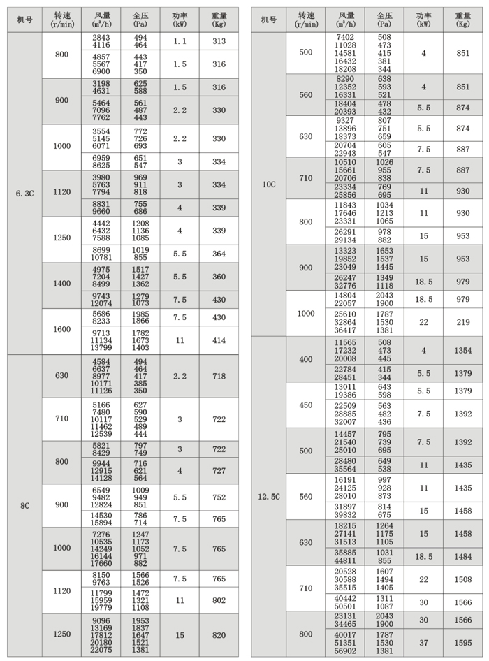 機號:3.15C#--21.5C# 風量:755-56902m3/h 風壓:354-2043Pa