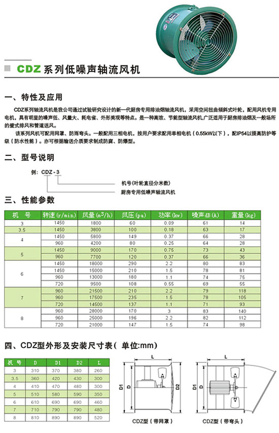 廚房排油煙風機系列 » CDZ系列低噪聲軸流風機