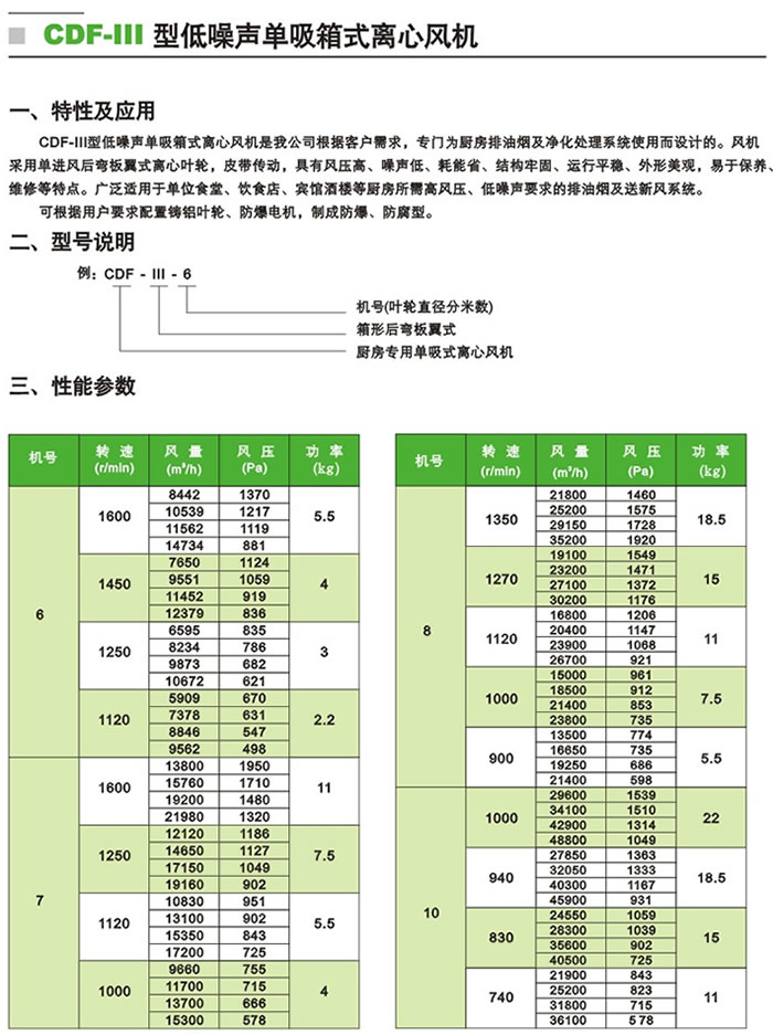 廚房排油煙風機系列 » CDF-Ⅲ型低噪聲單吸箱式離心風機
